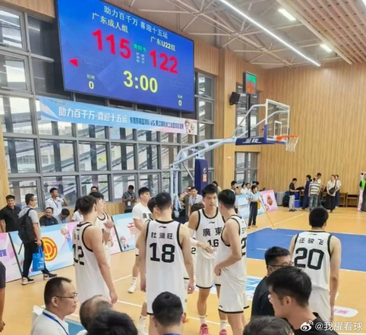 9月10日,广东全运男篮在东莞黄江体育馆举办了球迷见面活动。活动中,广东全运男篮成年组与U22男篮进行了一场表演赛,两位“徐中锋”再度对决——徐杰背身持球单打徐昕,随后以一记后撤步中投完成得分。...