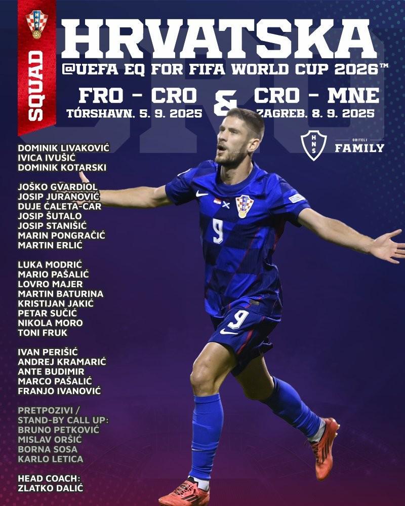 克罗地亚公布了世预赛大名单。其中,莫德里奇、格瓦迪奥尔领衔。